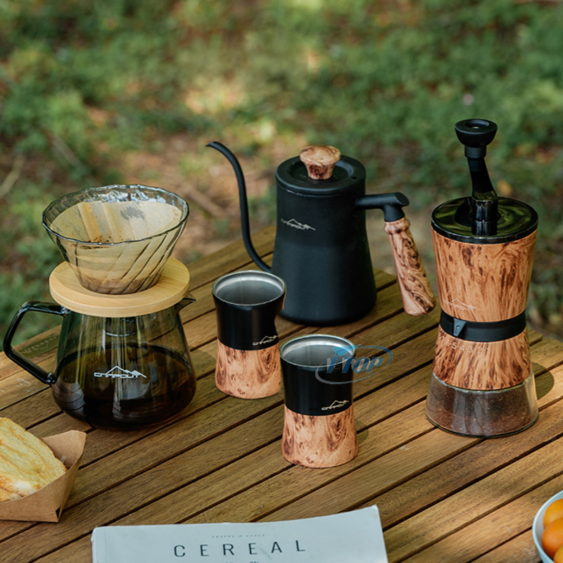 Outdoor coffee maker V60 set drip head Grinder with Stainless steel and kettle glass Timer Scale travel bag suitable for gifts